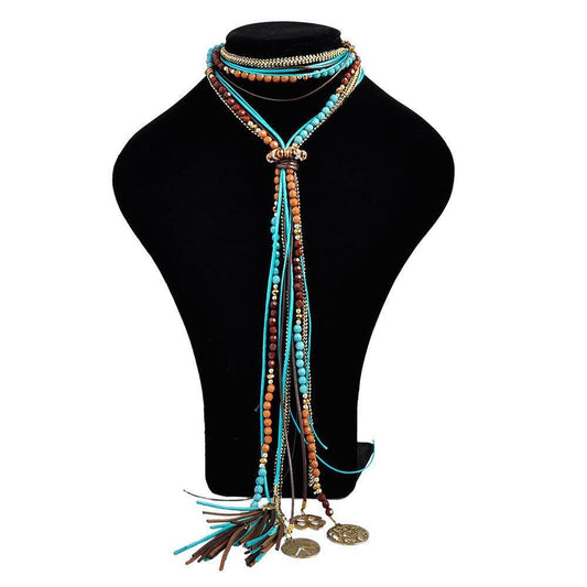 Ethnic Long Necklace Bohemian Fringed Sweater Chain Handmade Beads