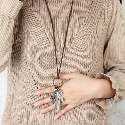 Original Retro Long Sweater Chain Fashion Joker Multi-element Cotton and Linen Accessories Pendant Necklace