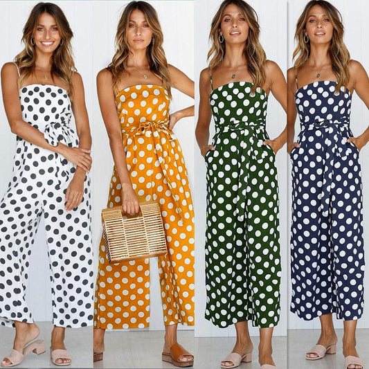 Sleeveless Strapless Straps with Wave Point Jumpsuit