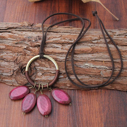 National Style Fashion Necklace Wooden Long Sweater Chain Furry Cord Necklace