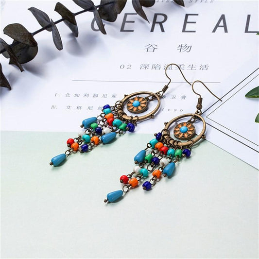 Bohemian long acrylic beads tassel drop earrings jewelry for women
