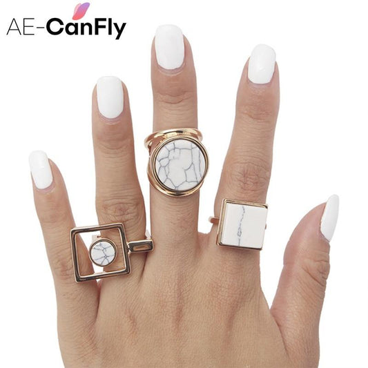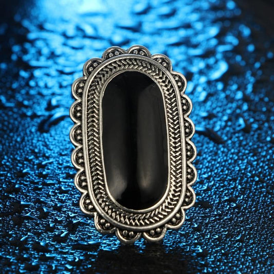 Vintage Silver Color Big Black Rhinestone Rings for Women