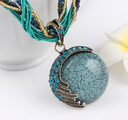 Bohemian Necklace Cat's Eye Stone Multilayer Braided Necklace and Chain Fashion Jewelry