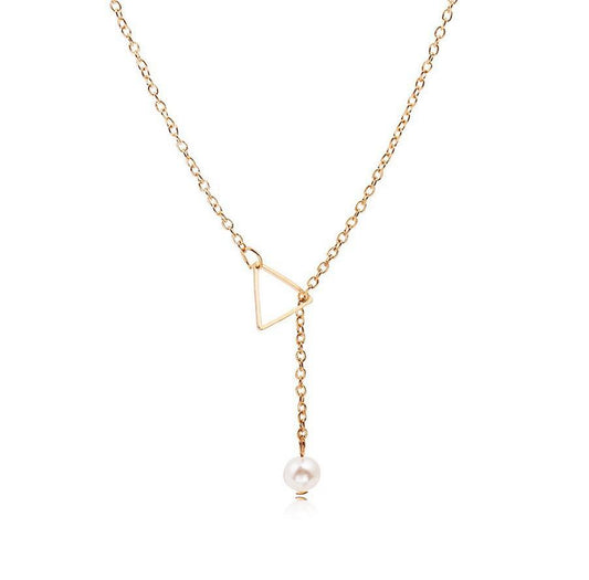 Simple Openwork Triangle Adjustable Pearl Pendant Women's Necklace Bone Chain