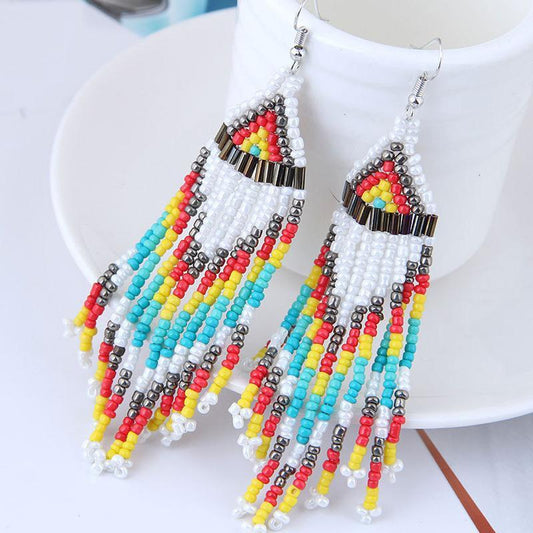 Bohemian Multicolour Seed Beaded Drop Dangle Earrings