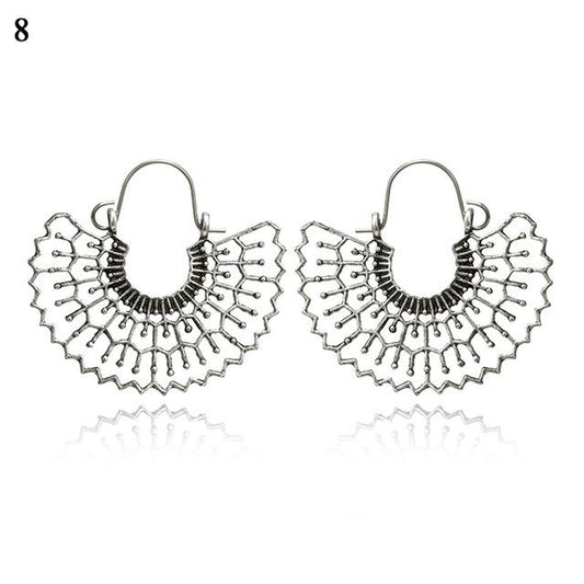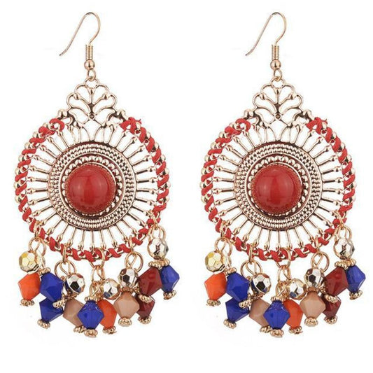 Woman Bohemia Woven Hollow Disc Beads Pendant Earrings