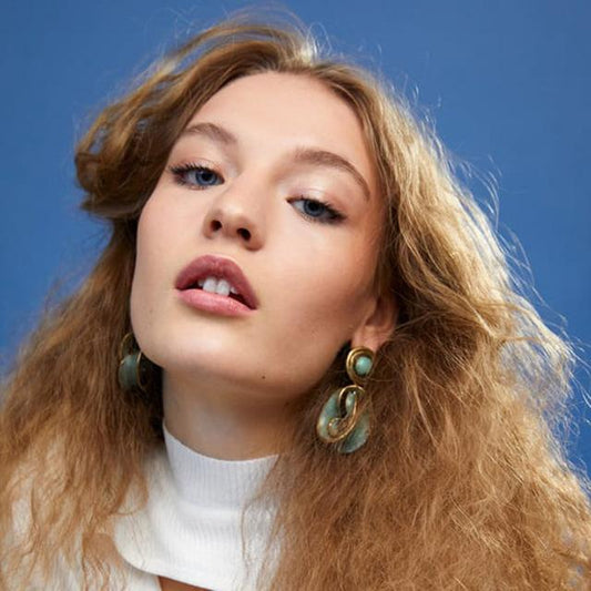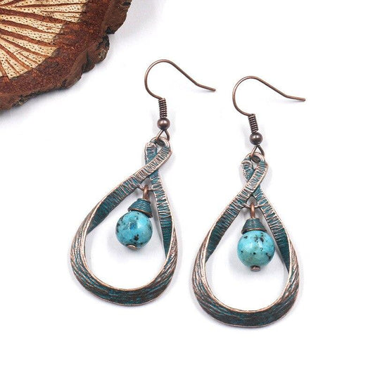 Distressed Earrings Blue Color Vintage Boho Oval Round Drop Earring