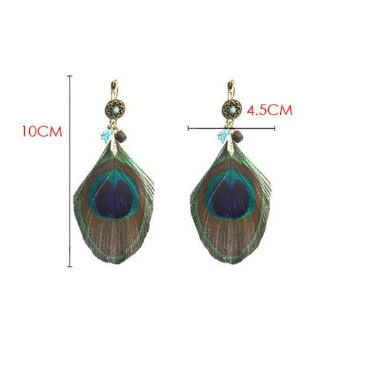 Vintage Peacock Feather Piercing Clip Earrings for Women