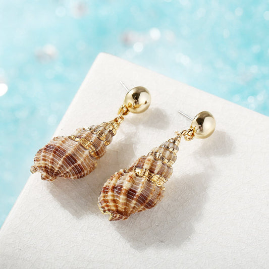 Retro Simple Gold Beads Inlaid Gold Edge Conch Earrings Female