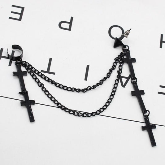 Cross cross tassel earrings Personality metal punk wind ladies ear clip earrings