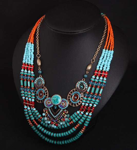 Vintage Bohemian Handmade Beaded Necklace Women's Multilayered Color Clothing Accessories Necklace
