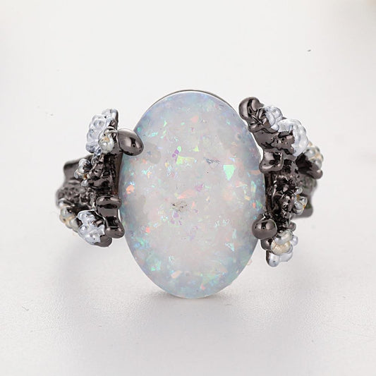 Tree Big stone rings white Oval Ring Black Rings Jewelry Moonstone Ring For Woman Wedding Engagment Jewelry