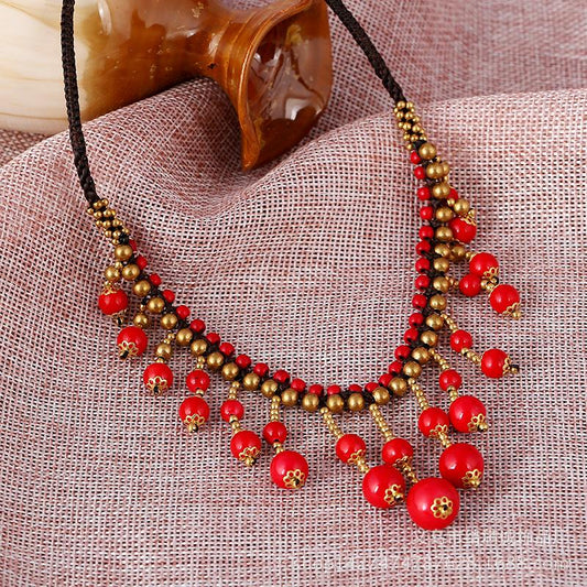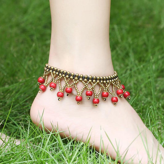 National wind foot decoration beach new multi-layer ball beads turquoise woven anklet female retro original
