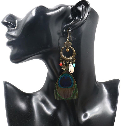 Ethnic Style Peacock Feather Shell Accessories Bohemian Earrings