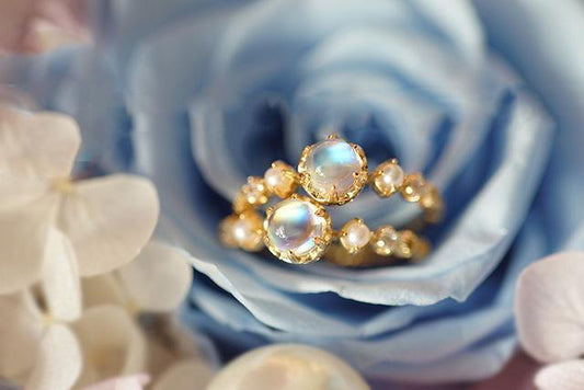 New Japanese antique style Sri Lanka vitreous pearl moonstone S925 sterling silver ring tail ring diamond