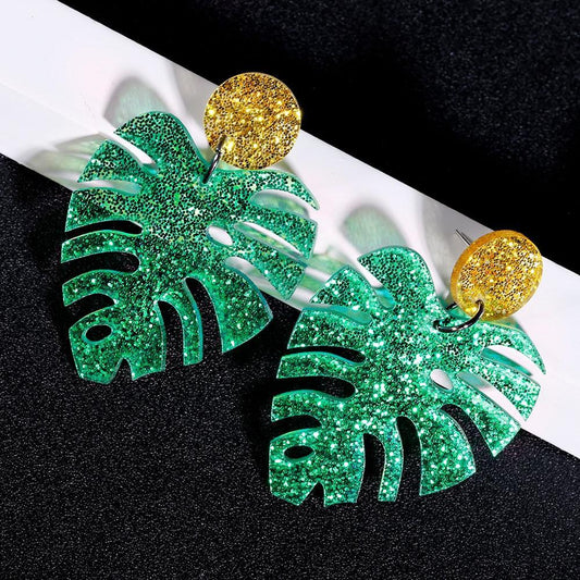 Trendy Tropical Plant Leaf Acrylic Drop Dangle Earrings Women Boho Green Monstera Jewelry