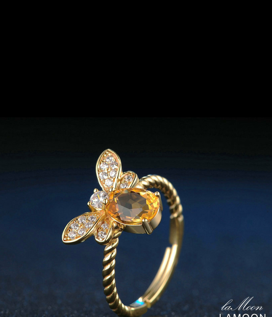 Natural Oval Citrine 925 Sterling Silver Jewelry Wedding Ring with 14K Gold Plated S925 For Women