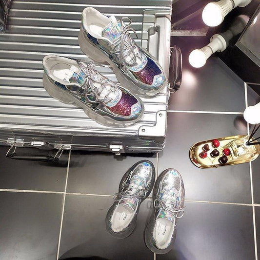 Laser bright face Torre shoes thick bottom Korean sports lace-up casual women shoes