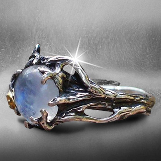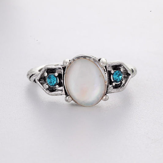 Vintage White Moonstone Antique Silver Ring Blue Crystal Female Girl Anniversary Wedding Retro Jewelry