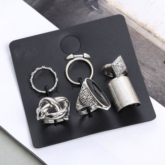 Vintage Big Black Stone Midi Ring Set Boho Antique Silver Color Knuckle Female Rings