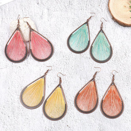 Bohemian folk style handmade silk earrings exaggerated personality drop earrings