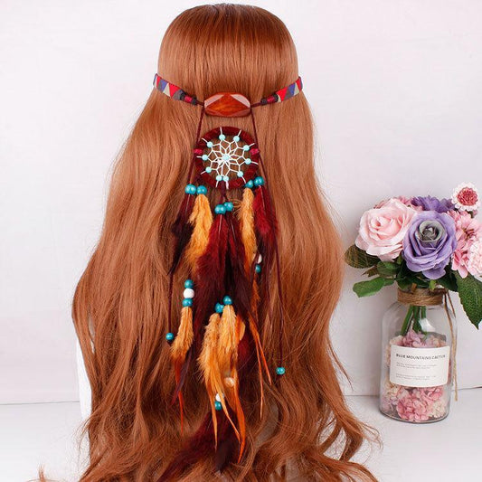 Feather hair band elastic dream catcher national style headwear