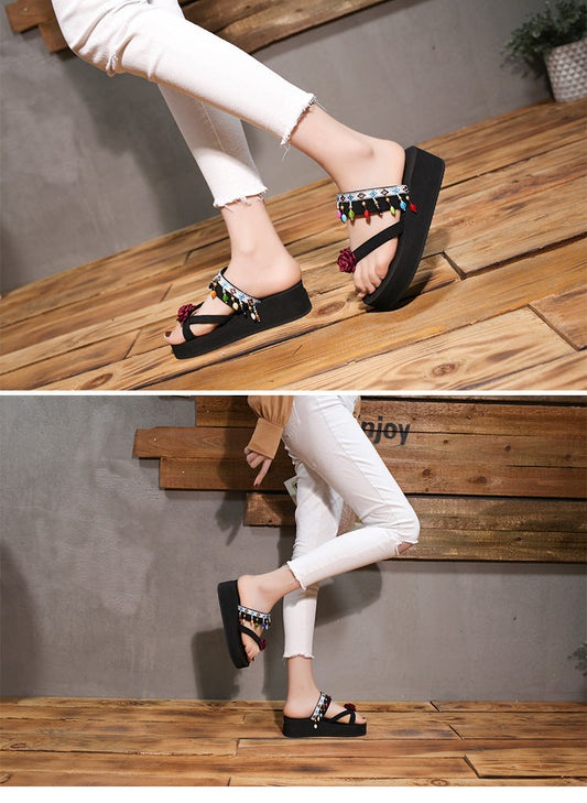 Set of Foot Flower Slippers Female Fashion Wedges Beach Shoes Sandals