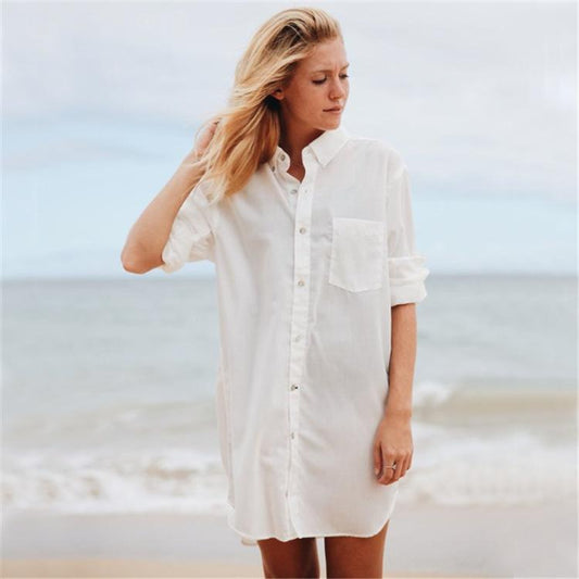 Single-breasted Shirt Beach Sunscreen Skirt Holiday Casual Skirt Bikini Blouse