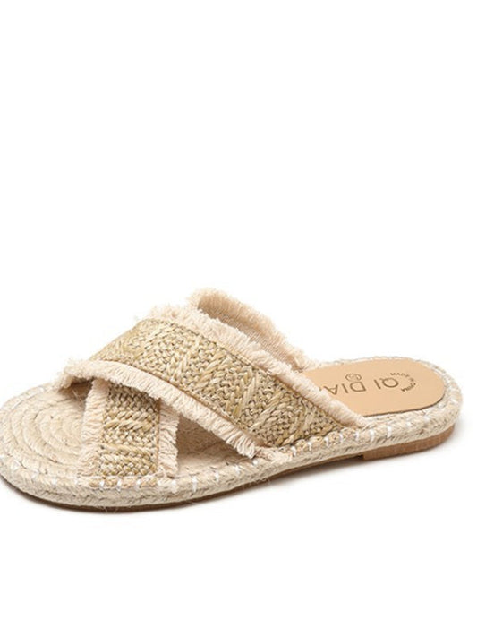 Wild Fringed Woven Cross Slipper Straw Beach Slippers