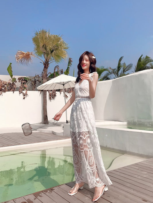 Bohemian Holiday Lace Sexy Backless Beach Long Dress