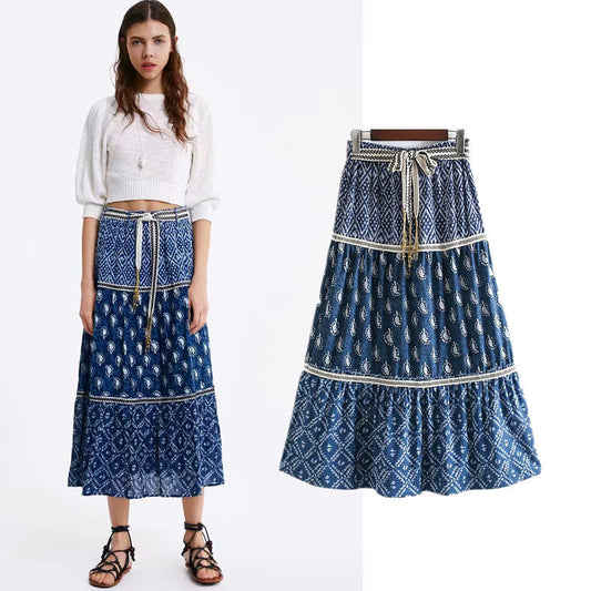 Bohemian Waist Print Skirt Dress