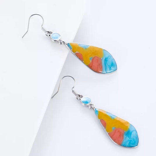 Retro Alloy Iridescent Stone Long Earrings
