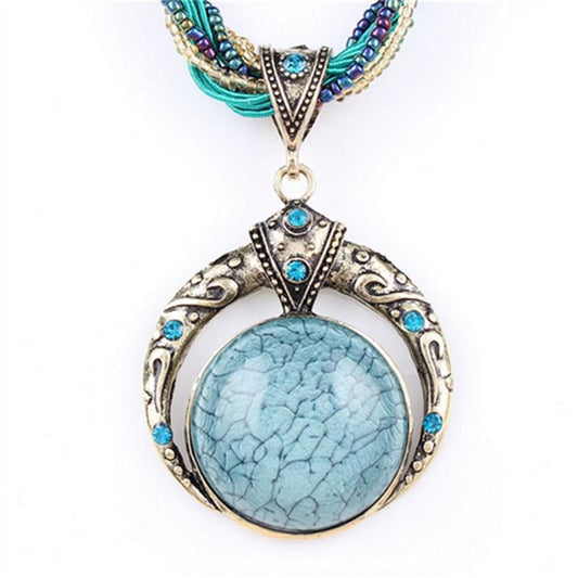 Female Vintage Choker Natural Stone Pendants Necklaces Big Boho Necklaces Ethnic Bohemian Jewelry Statement Bijoux Femme Mujer
