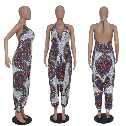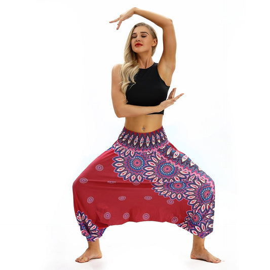 Printed Loose Wide Leg Casual Beamed Bloomers Pants