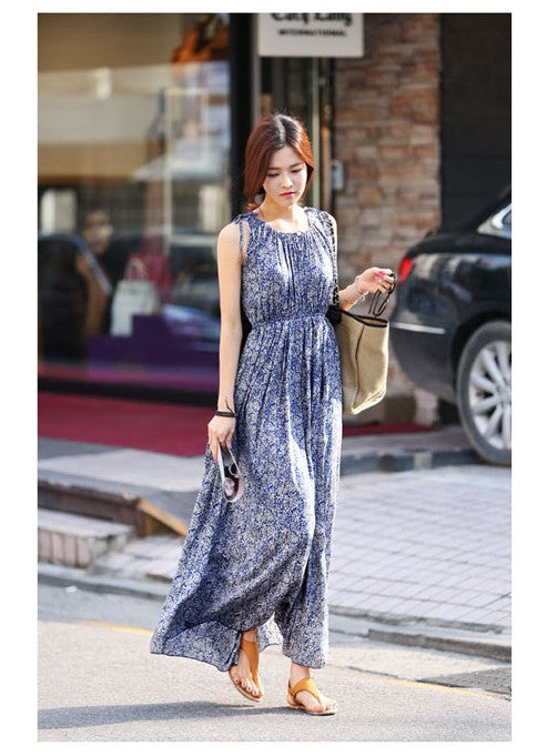 Bohemian Sleeveless Floral Dress Maxi Dress