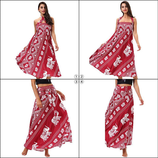 Elephant Print Beachwear Fashion Two Wear Tube Top Dress Strap Big Swing Skirt
