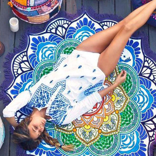 Lotus Printing Fringed Beach Towel Sun Shawl Variety Scarf Yoga Cushion Mat