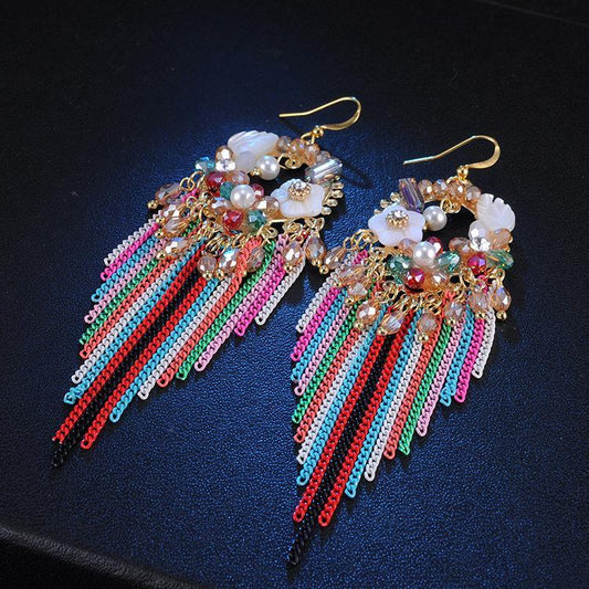 Fringed Vintage Bohemian Ethnic Style Crystal Earrings