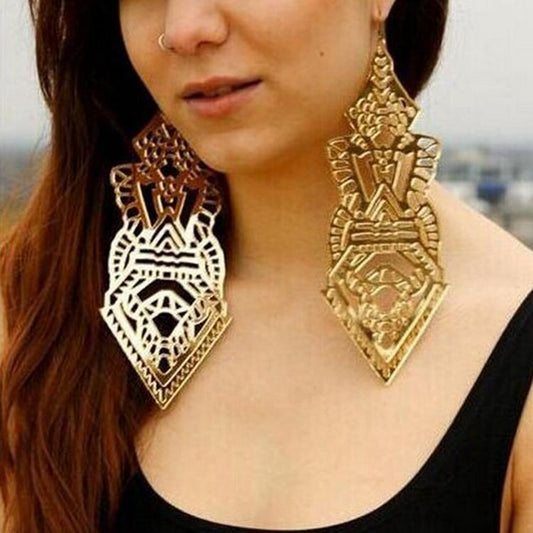 Exaggerated Symbol Long Hollow Pattern Big Earrings