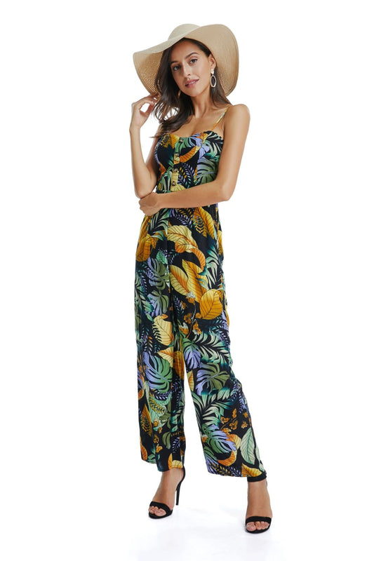 Bohemian Printed Beach Holiday Wind Sling Jumpsuit