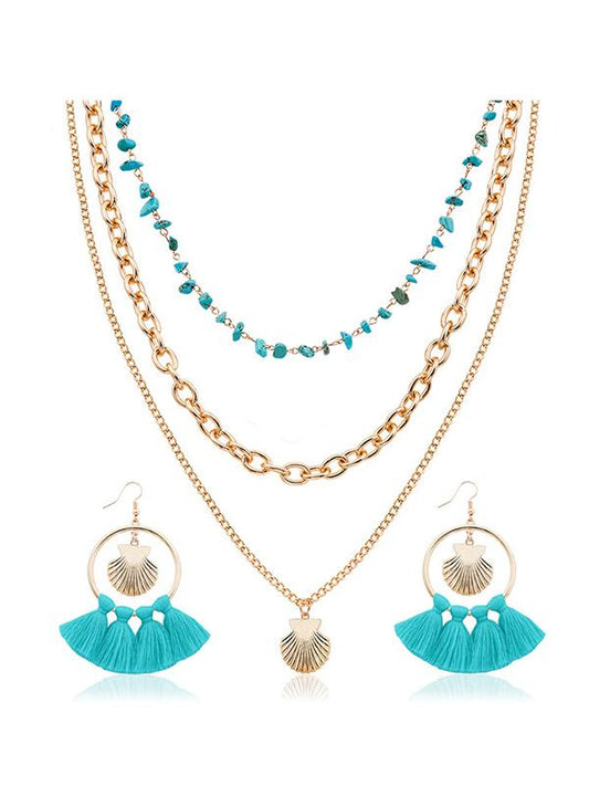 Boho Shell Tassel Earring And Necklace Accessories