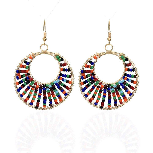 Bohemia Colorful Round Resin Beaded Drop Earring Jewelry