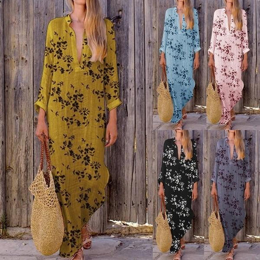 Boho V-neck Colorful Irregular Print Dress Long Skirt