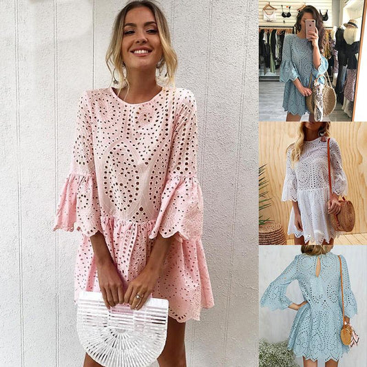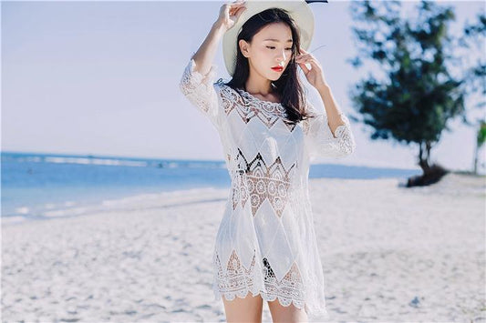 Cutout Sexy Beach Bikini Cover Shirt Long Section of Sleeves Hollow Beach Sunscreen Shirt Cover Up