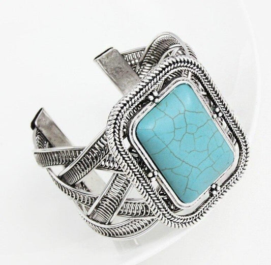 Vintage Blue Stone Turquoise Square Cuff Bangle Open Bracelets