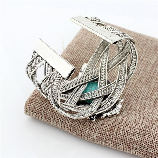Bohemian Vintage Turquoise Silver Color Bracelet Owl Open Cuff Bracelets Jewelry