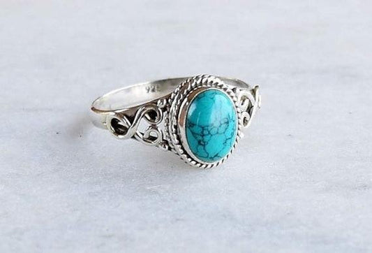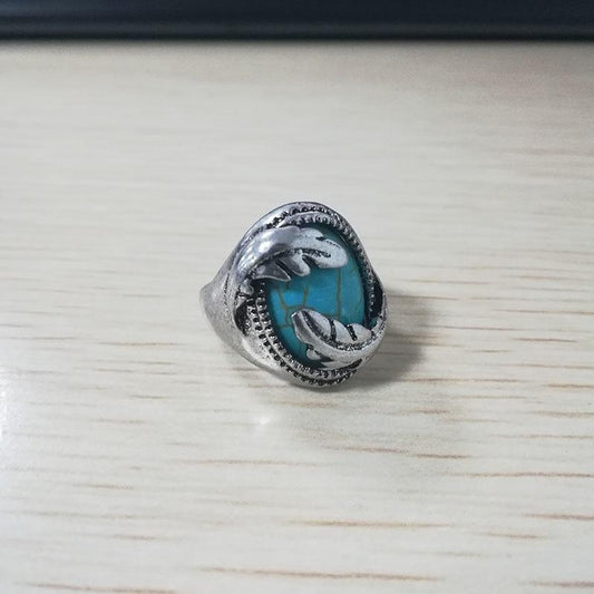 Vintage Antique Green Stone Fashion Jewelry Blue Turquoises Finger Ring
