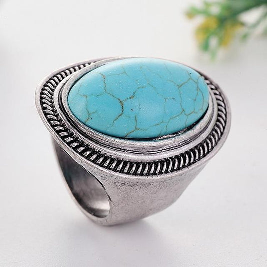 8PCS Oval Natural Stone Women Vintage Retro Color Rings