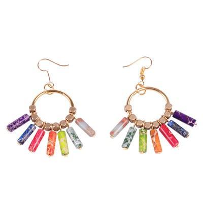 Creative 7 Chakra Colorful Natural Stones Gold Beads Dangle Earrings