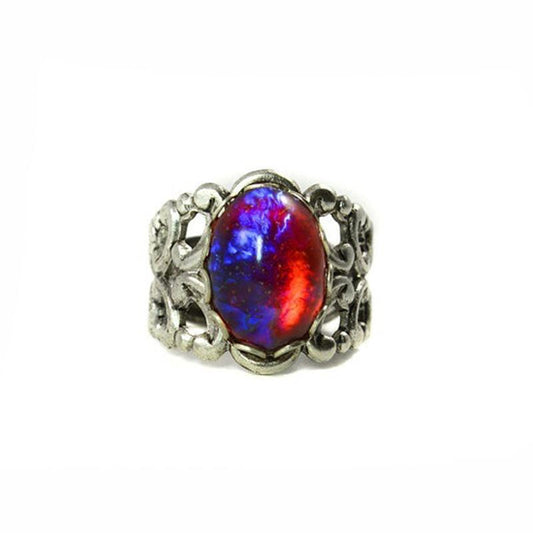 Vintage Silver Oval Purple Fire Opal Women Engagement Wedding Jewelry Rings